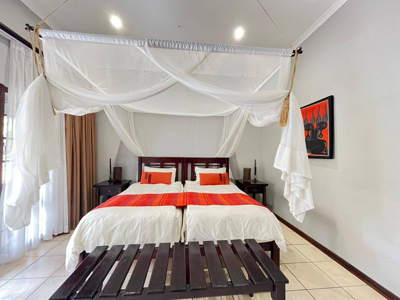 Grande chambre joliment décorée avec climatisation, lit double ou jumelé, rideaux obscurcissant, moustiquaire, salle de bain avec douche vitrée, 2 bassins, écran plat DSTV, service à café et thé, frigidaire, Sherry gratuit, salon séparé et commode, ventilateur de plafond, trésor électronique, ouvrant sur la véranda avec vue sur le splendide paysage.